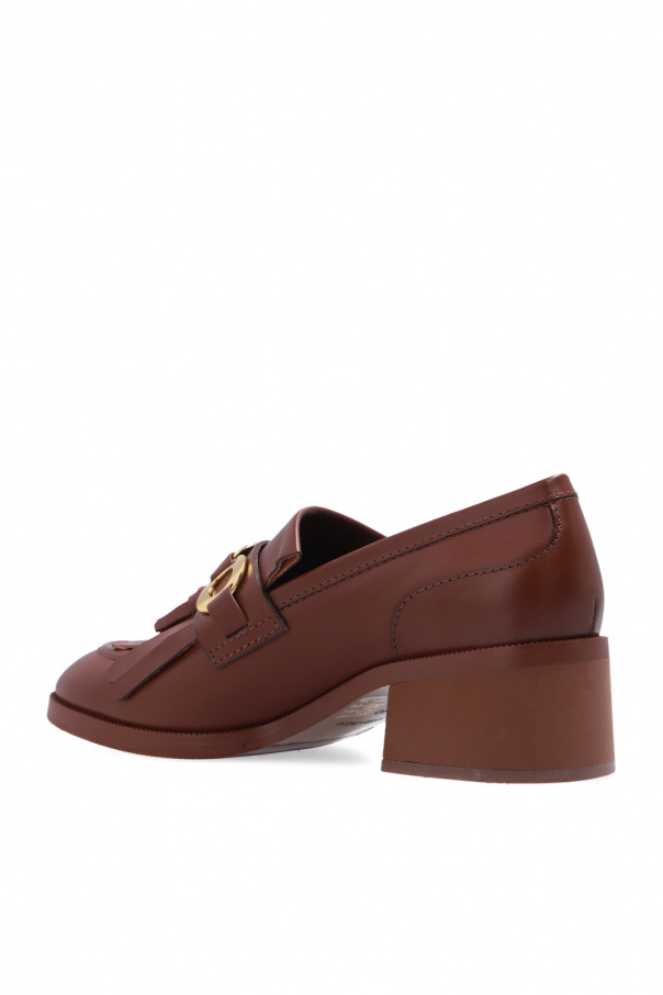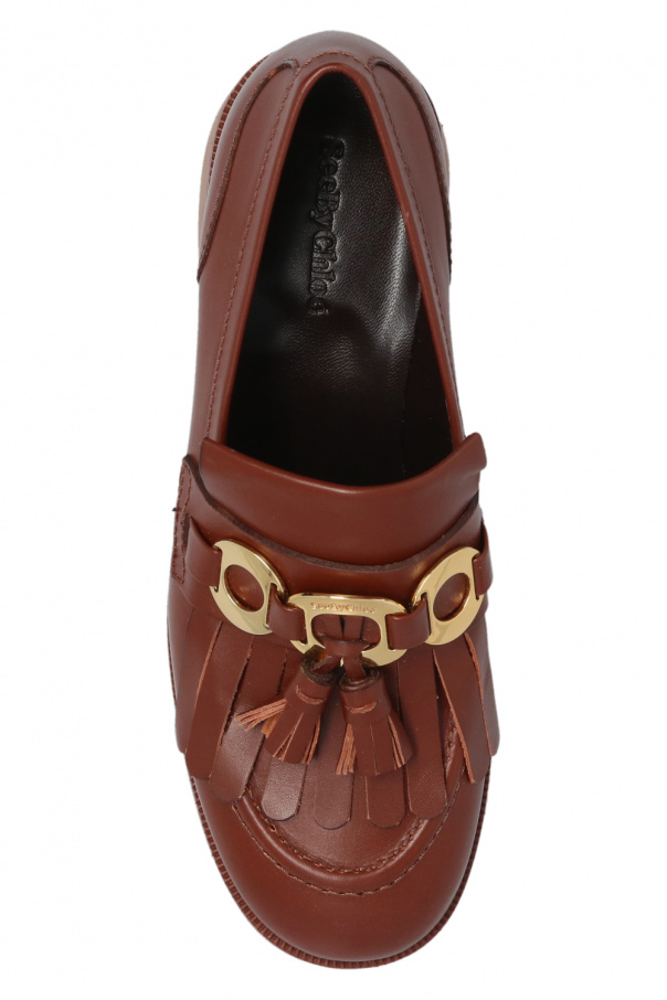Brown ‘Lyvi’ pumps from See By Chloé. Made of leather, this pair features a gold-tone logo appliqué, tassels and rubber sole in brown.