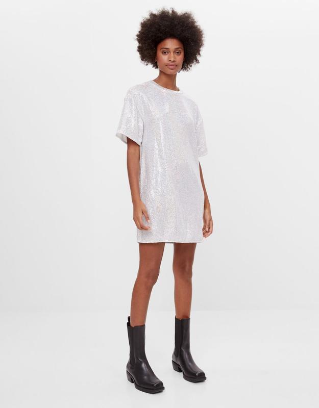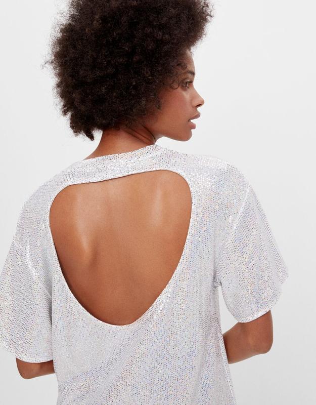 Размер S, M - в наличииБлестящее платье с изысканным вырезом на спине от бренда Bershka.