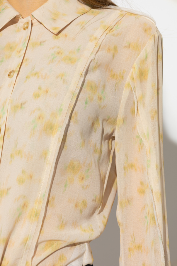 Yellow ‘Youbin’ shirt from Holzweiler. Embellished with a floral pattern, this style features button fastenings and long sleeves.