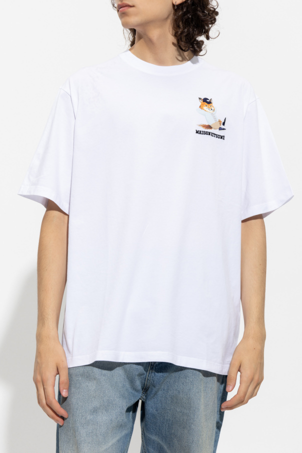 White T-shirt from Maison Kitsune. Crafted from cotton, this short sleeve design features a logo pattern and ribbed crew neck.