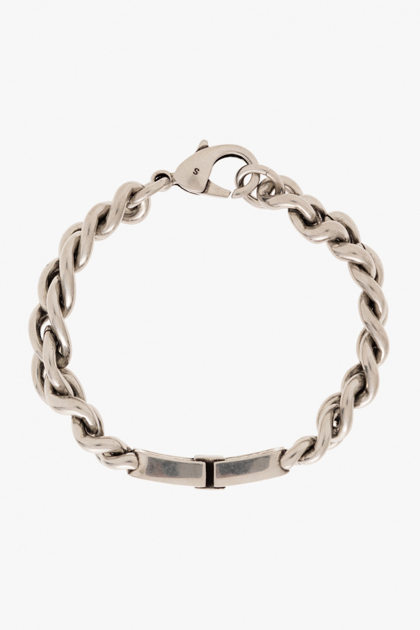Silver-tone chain bracelet from Balenciaga. Made of brass. Fastened with a lobster clasp, this item is decorated with a ‘BB Icon’ logo charm.