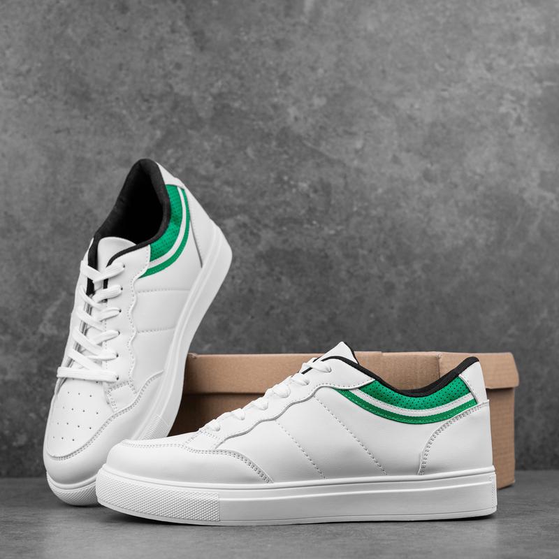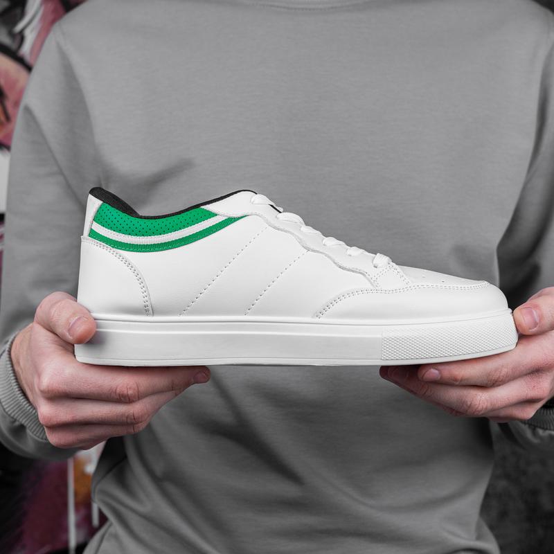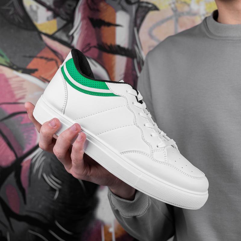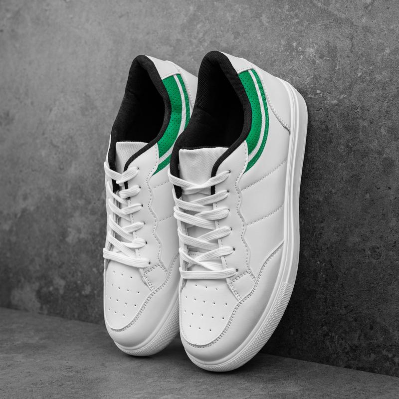 Демісезонні чоловічі кеди з еко шкіри низькі повсякденні білі із зеленим