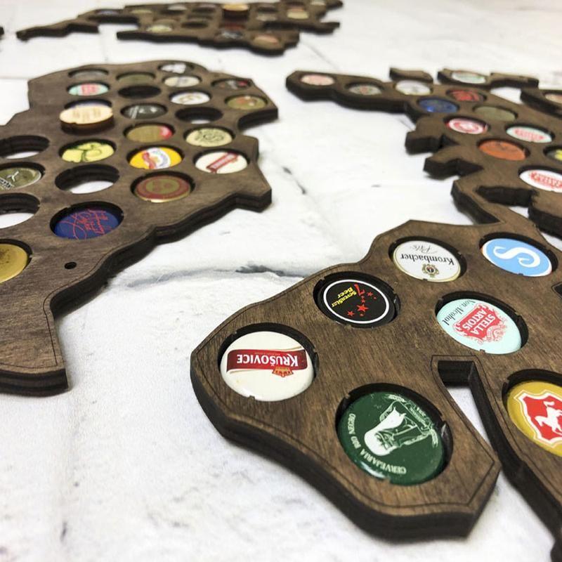 Любой человек, который любит пиво, будет рад получить уникальный и грандиозный подарок. Более того, этот атрибут должен способствовать его увлечению на все 100%. И таким презентом может стать доска для пивных крышек Карта мира.