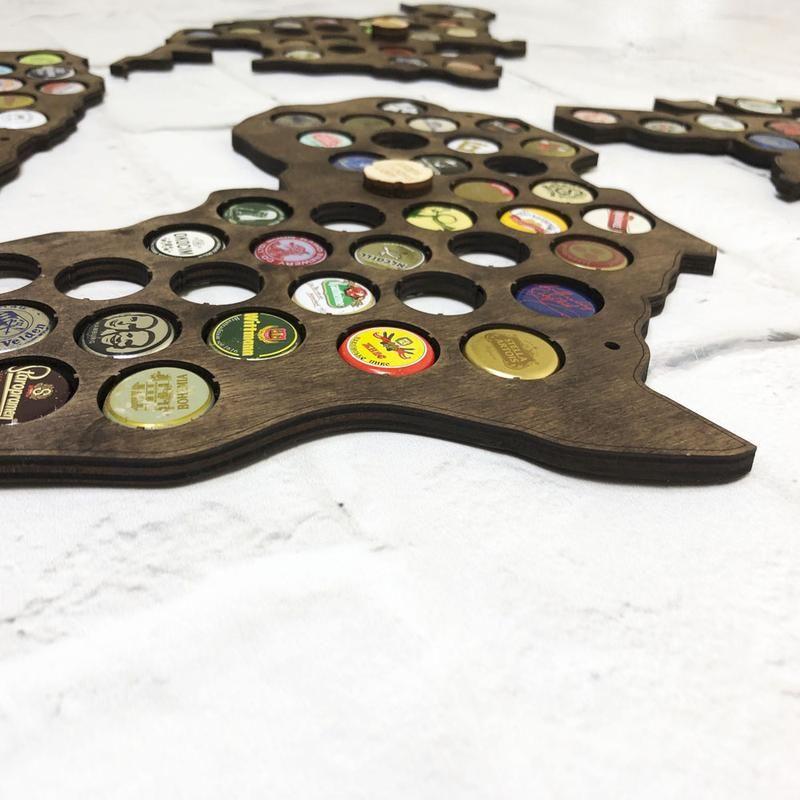 Подставка для пивных пробок в форме карты мира это уникальный подарок, который позволит вывести любовь к пиву на кардинально новый уровень. В ней имеется более 200 отверстий для крышек, что позволит собрать не только массивную, но и разнообразную коллекцию. А качество материалов позволит доске поддерживать азарт коллекционера всю жизнь.