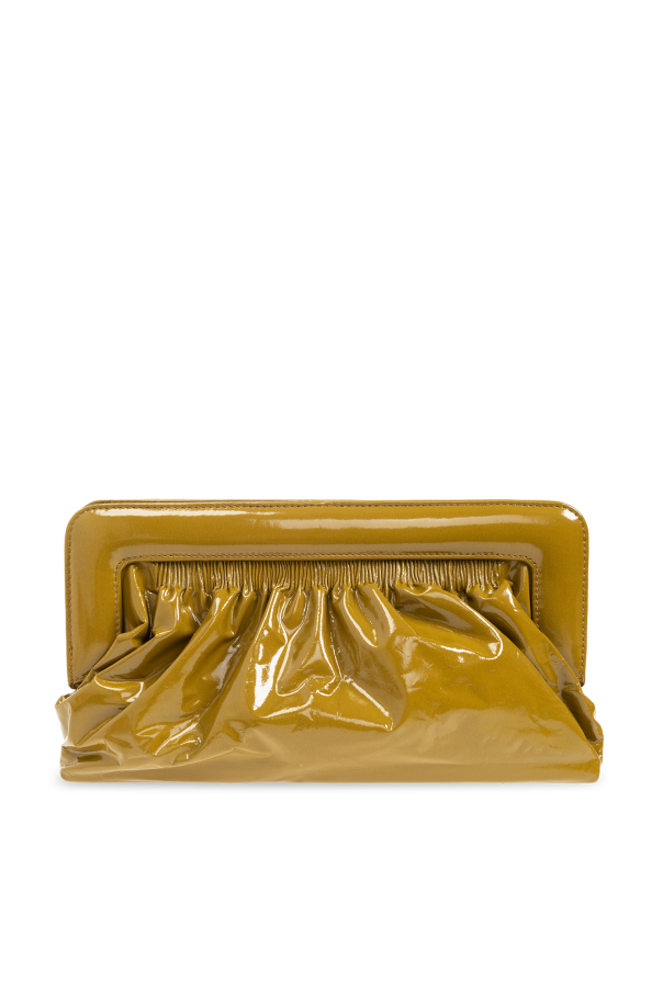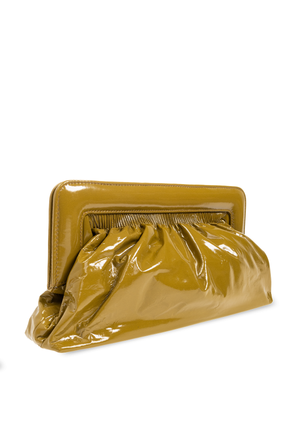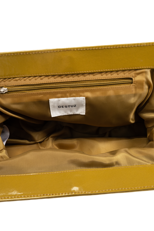 Green ‘VeldaGZ’ clutch from Gestuz. Crafted from patent sheep leather with a LWG certificate, this design features a magnetic closure, gathers and one internal compartment with one zip pocket.