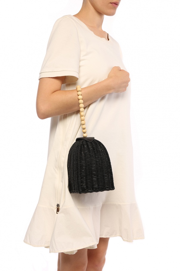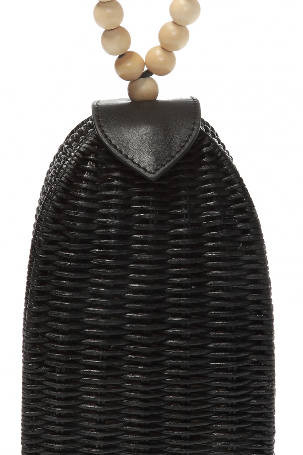 Black ‘Raya’ handbag from Ulla Johnson. Made of wicker. Trimmed with leather. Snap fastening. Decorative half-round handle. One compartment and a slip pocket inside.