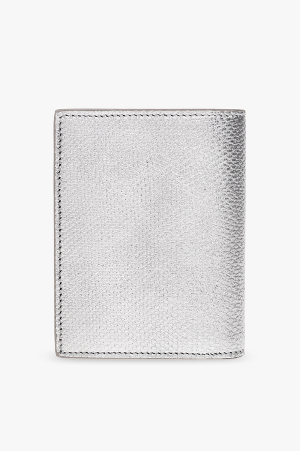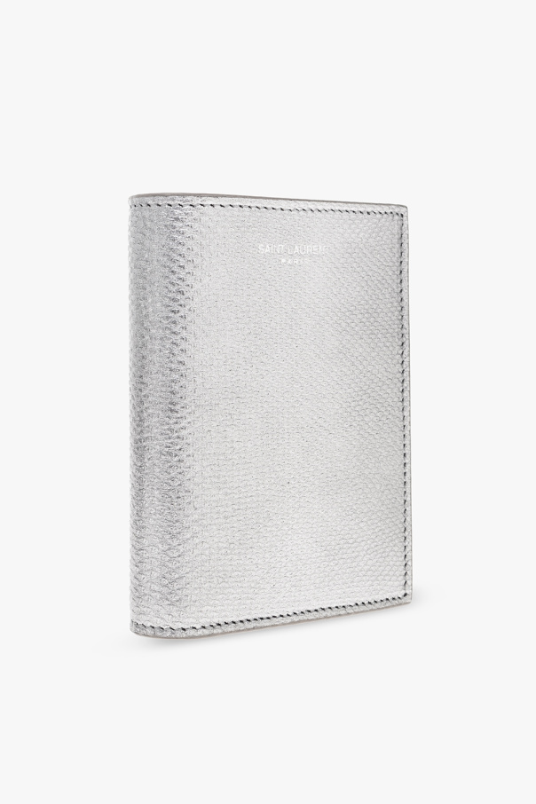 Silver-tone bifold wallet from Saint Laurent. Made of textured leather, this item is decorated with an embossed logo and has a bill compartment, three slip pockets and three card slots inside.