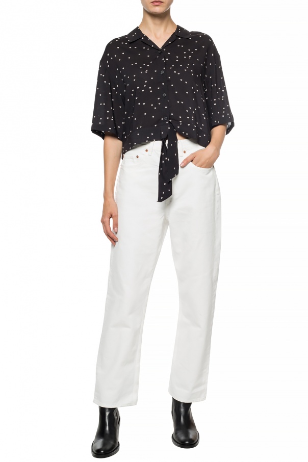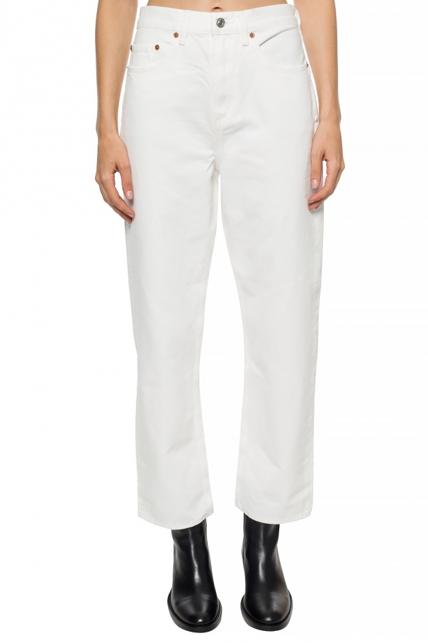 White ‘Mari’ jeans from AllSaints. Fastened with a zip and buttons. Two slip pockets on the front, two at the back. Straight legs.