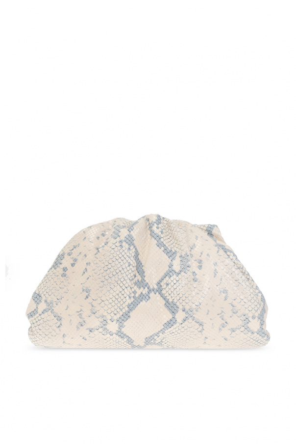 Light pink \'Pouch Teen’ clutch from Bottega Veneta. Made of goat leather, this item is decorated with an animal pattern and has one internal compartment.