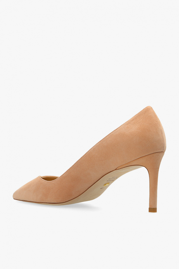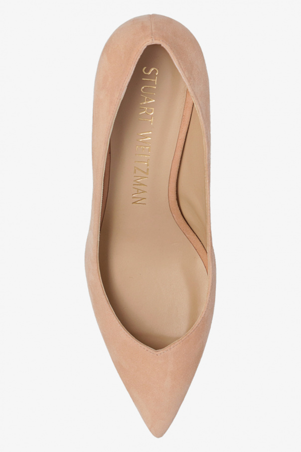 Cream ‘Anny’ stiletto pumps from Stuart Weitzman. Made from suede, this model features a tapered toe silhouette with a cream leather sole.