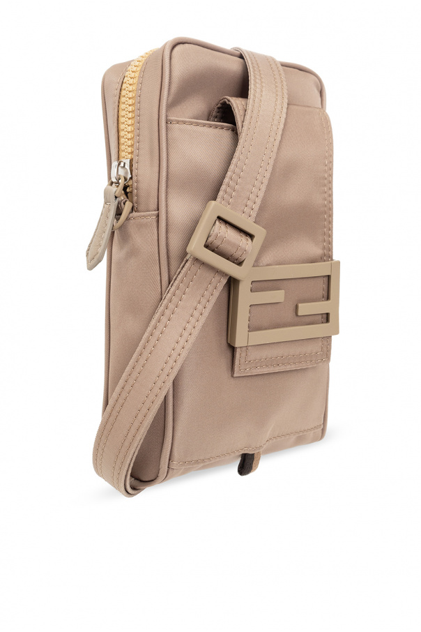 Brown phone holder from Fendi. Fastened with a zip, this garment features a strap with a magnetic snap, logo appliqué, adjustable shoulder straps and one internal compartment.