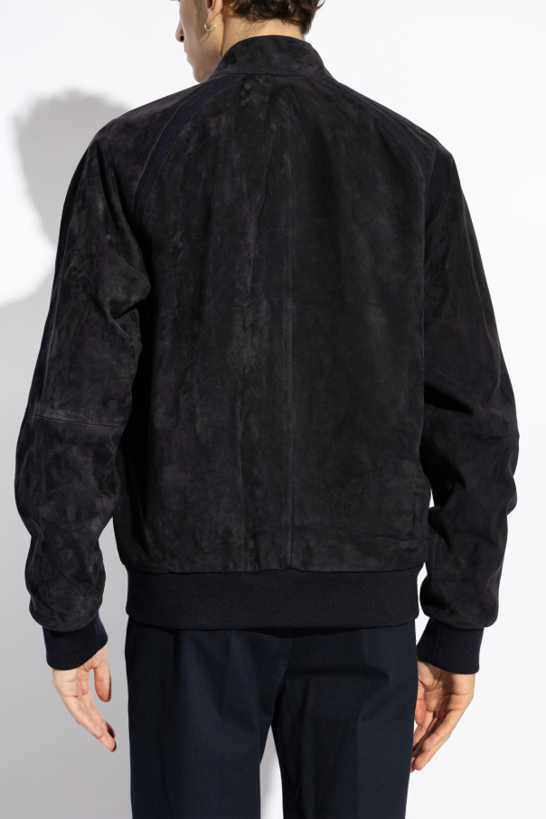 Presenting the Suede Jacket with Stand-Up Collar from the exclusive collection of the renowned designer Giorgio Armani. This jacket epitomizes sophistication and luxury, crafted for the discerning gentleman. The jacket features a classic silhouette with a full-length zipper at the front. The stand-up collar, secured by two buttons, adds to its elegant and refined appearance. The sleeves are straight and finished with elastic cuffs, ensuring a perfect fit. Constructed from premium lambskin suede, this jacket exudes a luxurious feel. The elastic cuffs and hem are made from a high-quality, stretchable material that conforms comfortably to the body. The deep navy hue of the jacket enhances its timeless appeal. Subtle yet sophisticated details include two side pockets, discreetly integrated into the design and fastened with snaps. The intricate stitching further elevates the jacket\'s elegance. Notably, the exterior of the jacket is devoid of any visible logos or branding, signifying a subtle and understated luxury. Why Buy This Product? Designed by the illustrious Giorgio Armani, a name synonymous with luxury and style. Crafted from high-quality lambskin suede, ensuring durability and a plush texture. Classic design with modern touches, featuring a stand-up collar and full-length zipper. Subtle detailing with integrated side pockets and exquisite stitching. Deep navy color that complements any wardrobe, perfect for versatile styling.