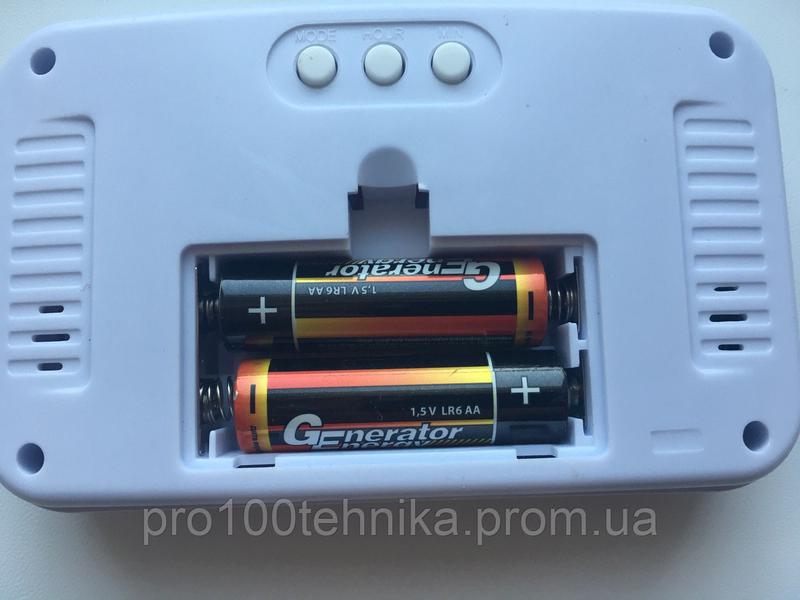 часов осуществляется от двух батареек типа АА (в комплект не входят). Часы