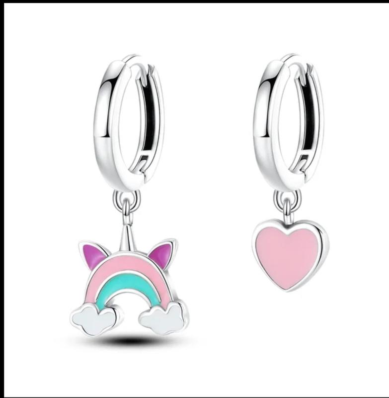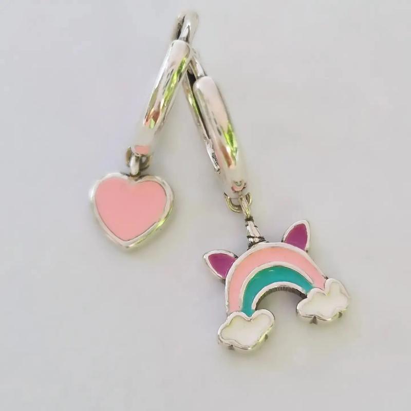 Срібні дитячі сережки единоріг, сердечко 925 проба