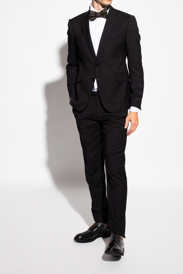 Black ‘Wesley’ Derby shoes from Paul Smith. Crafted from leather, this lace-up model sits on a black rubber sole and showcases the brand\'s signature stripe trims.