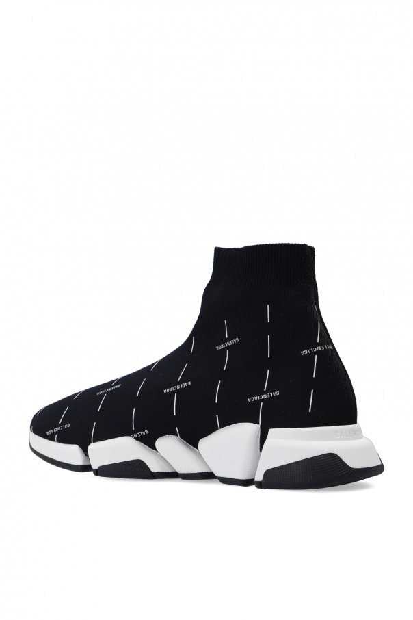 Black ‘Speed 2.0 LT’ sock sneakers from Balenciaga. Printed with the brand's logo in white, this lace-up pair sits on a black and white rubber sole.
