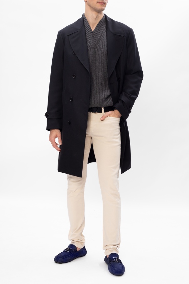 Navy blue ‘Peter’ moccasins from Salvatore Ferragamo. Boasting silver-tone logo hardware, this suede-crafted pair sits on a black rubber sole.