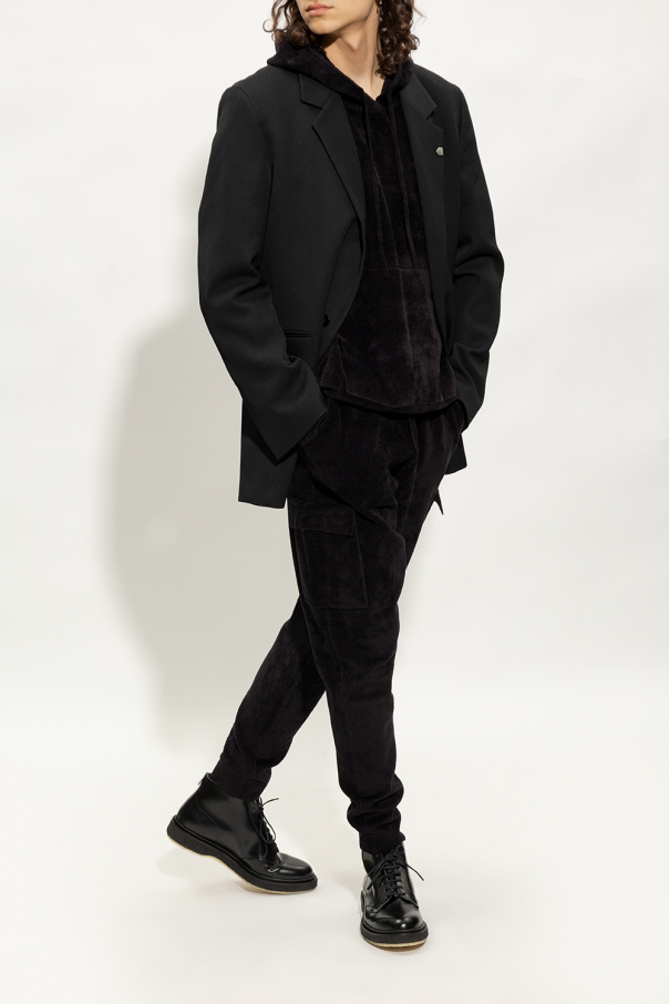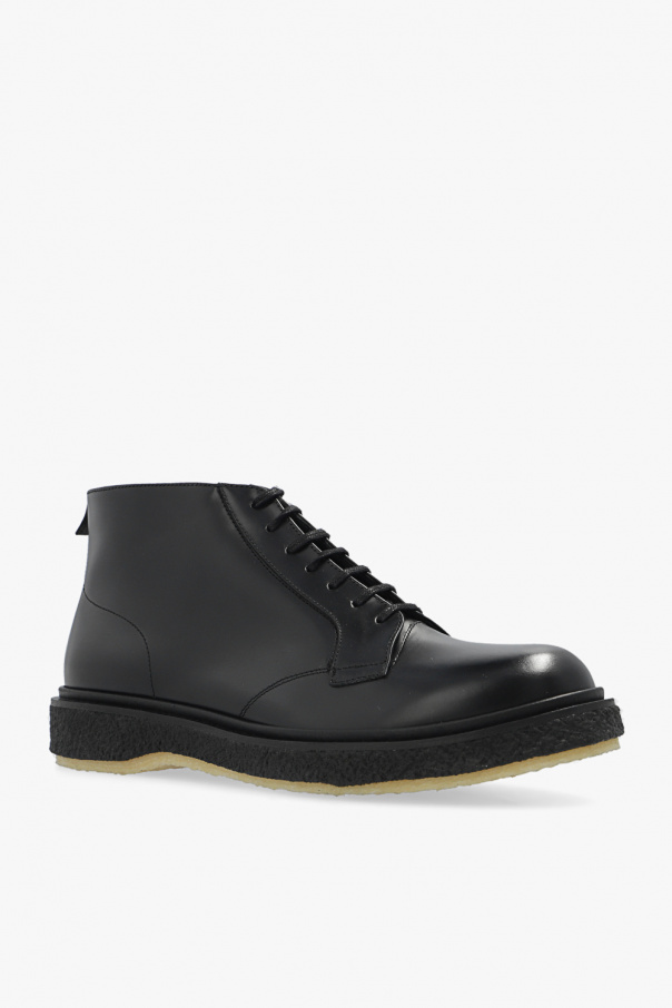 Black ‘Type 77’ ankle boots from Adieu Paris. Crafted from smooth leather, this lace-up model sits on a beige and black rubber sole.