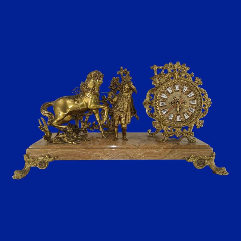 Бронзовые часы на мраморе "Всадник с лошадью" арт. 0314