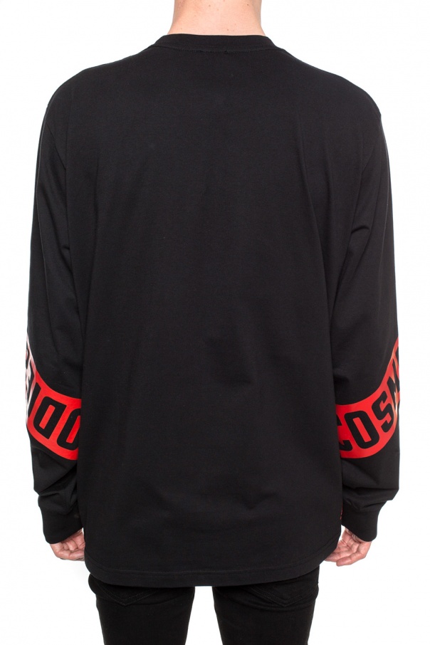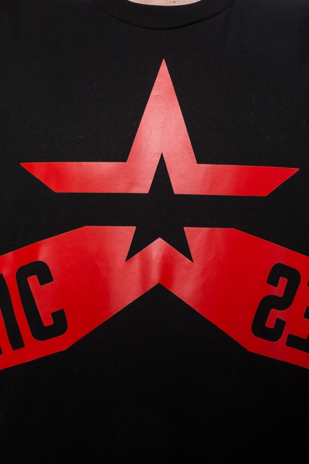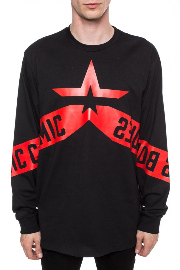 Black crewneck T-shirt from Diesel. Made of cotton. Embellished with red graphic print with a motif of star. It features long sleeves and an elasticated collar and cuffs.