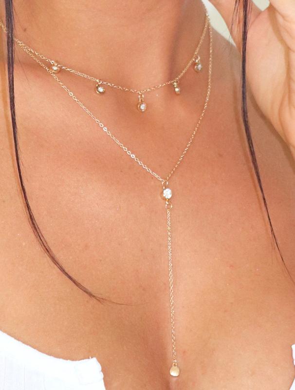 Двойная цепочка с небольшими подвесками с стразами посередине. Хрупкая и стильная. Новая, в наличии.