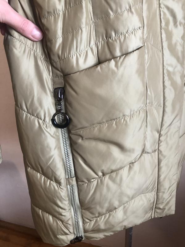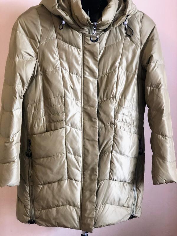 Якісна добротна підкладка, прошита разом з наповнювачем, не збивається при пранні.Якісна хороша фурнітура і акуратне шиття. Нова з бірками. ! Залишився один розмір! Плечі 36 см Обєм грудей 104 Довжина рукава від плеча 63 см, плюс трикотажний патент Стегна 108 Довжина куртки 74