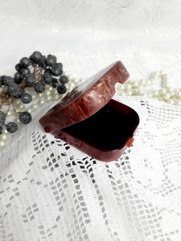 Вашему вниманию редкая винтажная вещица, - коробочка -шкатулка Челябинского часового завода. В 1950-х годах в такой чехле продавались карманные часы на цепочке! Коробочка, действительно, очень удобна. Выполнена из карболита (советского бакелита), внутри отделана мягким бархотом. Закрывается плотно, часики хранить в ней было комфортно и безопасно. В наше время этот стильный аксессуар можно использовать как табакерку, монетницу, чехол для хрупких мелких вещиц либо же хранить в коллекции в качестве безмолвного свидетеля минувших лет!