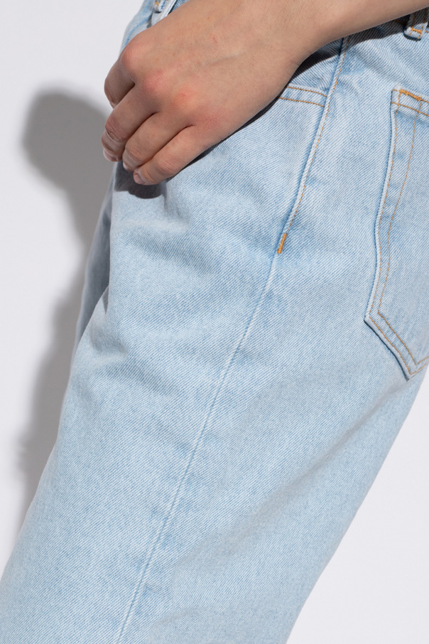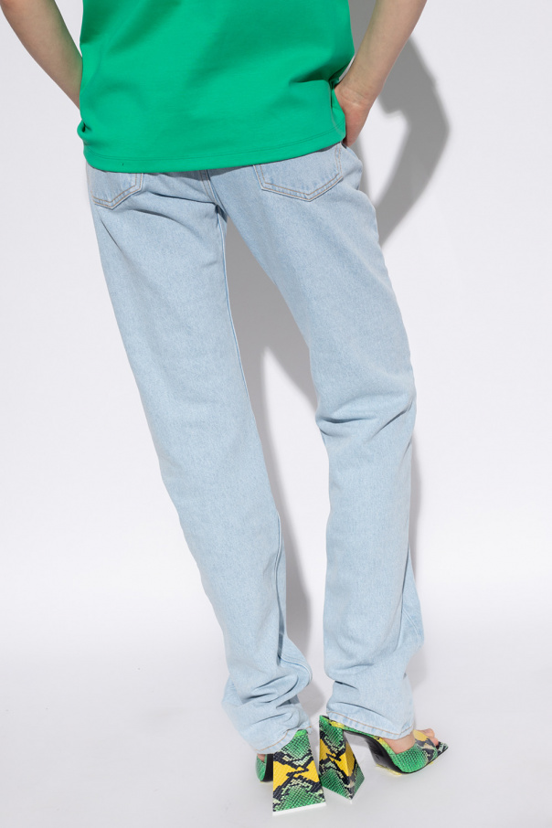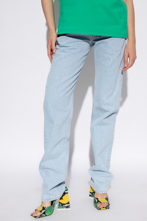 Light blue jeans from The Attico. Designed with a boyfriend fit, this pair features button fastenings, classic five pockets and an embroidered beige logo on the back.