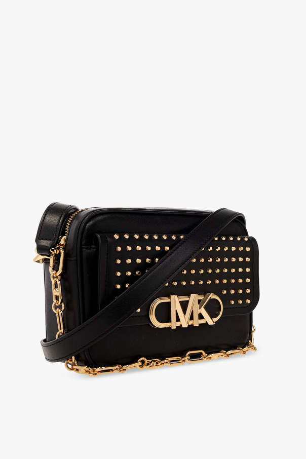 Black shoulder bag from Michael Michael Kors. Made of leather, this model is complete with studs, logo detail, back pocket, shoulder chain, one internal compartment and gold-tone metal hardware.