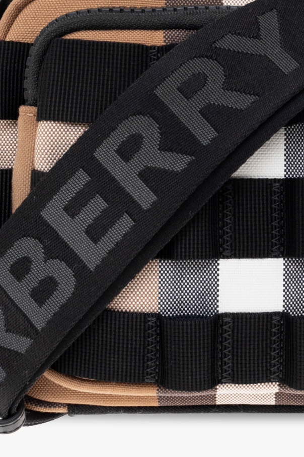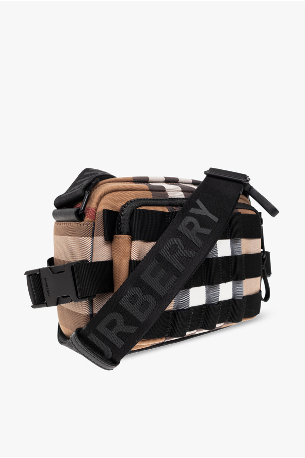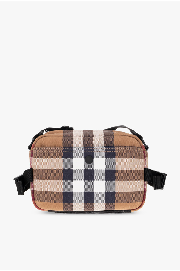 Beige and black ‘Paddy’ shoulder bag from Burberry. Crafted from fabric, this design fastens with a zip and showcases the brand's signature, colourful check pattern. It is complete with one zip pocket on the front, one back snap-fastened pocket, buckle tabs on the sides, an adjustable shoulder strap with an embroidered logo and one internal compartment with a zip pocket.