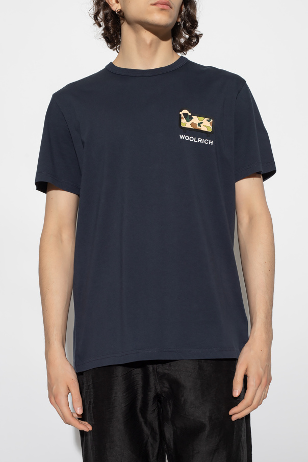 Navy T-shirt from Woolrich. Made of organic cotton, this short sleeve design features a rubberized logo detail and ribbed crew neck.