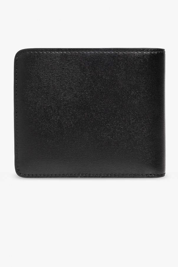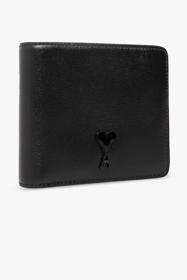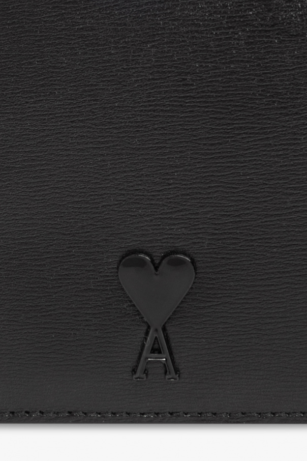 Black bifold wallet from Ami Alexandre Mattiussi. Crafted from leather, this item is decorated with an ‘Ami De Coeur’ logo appliqué and has a bill compartment, two slip pockets and eight card slots inside.
