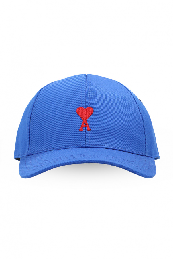 Blue baseball cap from Ami Alexandre Mattiussi. Crafted from cotton, this item showcases red logo embroidery and an adjuster on the back.