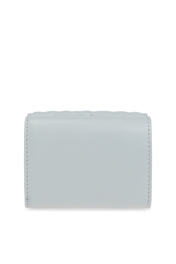 Light blue wallet from Fendi. Made of lamb leather, this model features snap buttons, a tactile monogram pattern, metal buckle on the front and snap-fastened coin pocket as well as one bill compartment and three card slots.