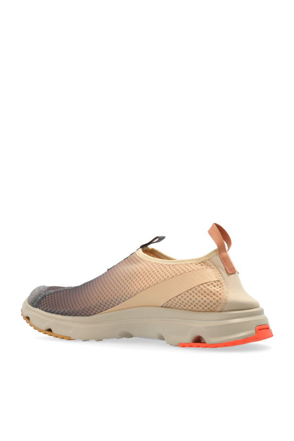 Introducing the ‘RX MOC 3.0’ by Salomon, a quintessential addition to any woman\'s sportswear collection. These sneakers embody the fusion of form, function, and fashion, tailored for the dynamic lifestyle of the modern woman. Crafted with a breathable mesh exterior, these shoes promise not only a stylish gradient of beige to deeper browns but also a comfortable, ventilated experience during warmer conditions. The design features rounded toes and low-profile, elasticated sides for effortless slip-on convenience, while the thick, contoured sole offers unparalleled comfort and cushioning. Salomon\'s iconic logo adorns the upper, enhancing brand recognition and adding a touch of elegance. Additionally, a handy heel loop facilitates easy wearing, and the robust sole with pronounced tread ensures excellent grip across varied terrains. Accents of black and subtle orange elements on the sole inject a vibrant contrast, making these shoes as visually appealing as they are practical. Made from a sophisticated blend of rubber, leather, and fabric, with an interior that mirrors this quality composition, the ‘RX MOC 3.0’ is not just a shoe but a sanctuary for your feet. Whether it\'s for active rest days or casual wear, these sneakers are engineered for comfort and functionality, perfect for those who value both performance and style. Why Choose the ‘RX MOC 3.0’? Designed with breathable mesh for ultimate comfort in warm weather. Ease of wear with elasticated sides and heel loop. Exceptional support and cushioning provided by the thick, contoured sole. Stylish gradient coloring and distinctive branding for a sophisticated look. Durable construction from high-quality materials including rubber, leather, and fabric. Optimal grip with a robust tread, suitable for various conditions.