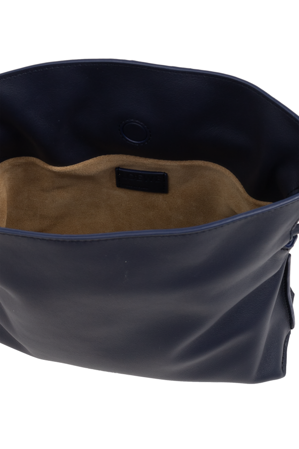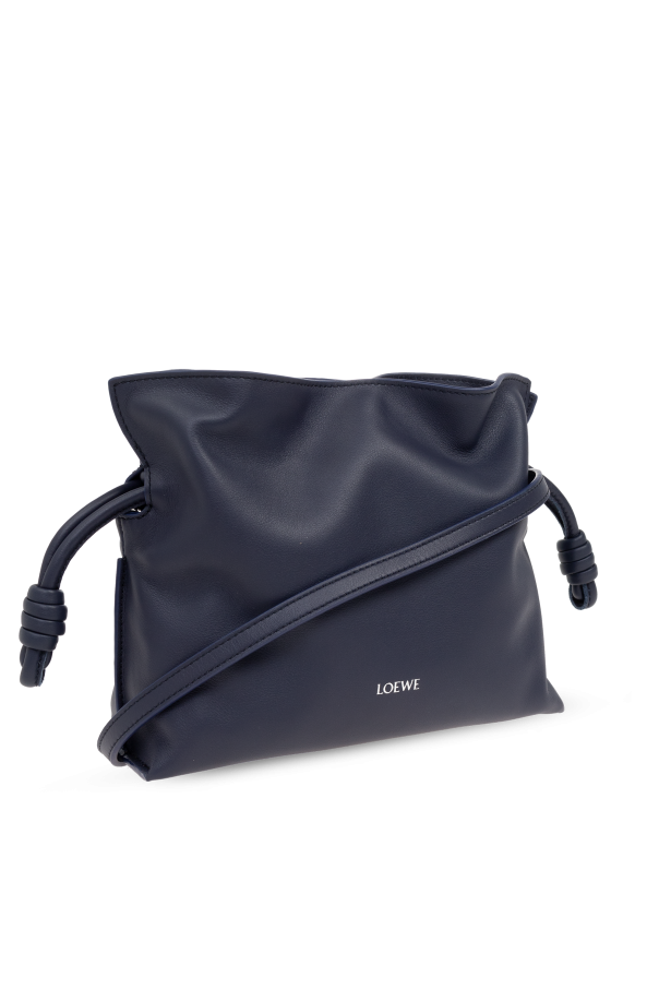 Introducing the \"Flamenco Mini\" shoulder bag by Loewe, an epitome of elegance and luxury in the realm of accessory fashion. Crafted from the finest quality leather with a smooth finish, this navy blue masterpiece presents an exquisite blend of style and functionality. The \"Flamenco Mini\" showcases a soft, flexible structure, allowing for a subtle shaping that adds a relaxed yet refined twist to its rectangular silhouette with rounded edges. Its sophisticated navy hue is complemented by the iconic LOEWE logo, discreetly positioned at the bottom, serving as a hallmark of unparalleled craftsmanship and distinguished heritage. Attention to detail is evident in the contrastingly lined interior, a light beige complementing the navy exterior, equipped with a sleek, flat pocket bearing the brand\'s label for an added touch of exclusivity. A functional, color-coordinated shoulder strap with adjustable features ensures comfort and versatility, making it an indispensable accessory for the discerning fashion enthusiast. Why Purchase This Product? Exceptional quality leather construction for lasting elegance. Unique soft and flexible design that stands out. Iconic designer logo for unmistakable prestige. Practical interior with an additional pocket for organization. Adjustable shoulder strap for customized comfort and style.