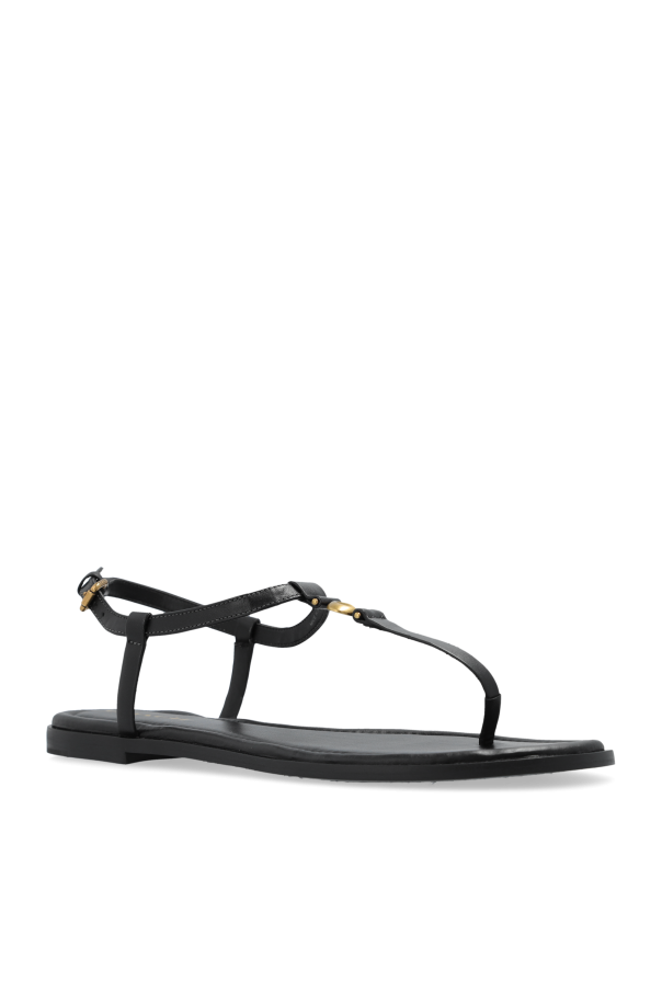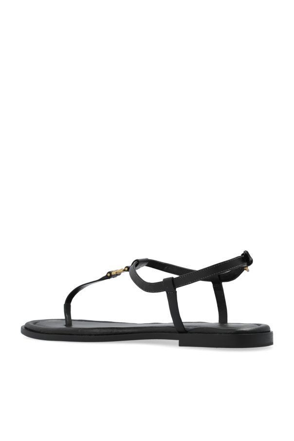 Introducing the \'Jessica\' sandals by Coach, a testament to minimalist elegance and timeless design. Crafted with meticulous attention to detail, these sandals feature a sleek black hue that exudes sophistication. The essence of their charm lies in the delicate balance between functionality and fashion, making them a quintessential addition to any discerning wardrobe. Constructed from 100% high-quality leather, these sandals are both durable and plush, offering an exceptional level of comfort. The inner lining, crafted from premium materials, ensures a soft embrace for your feet, while the robust 100% rubber sole provides stability and longevity. The subtle incorporation of golden accents, seamlessly integrated into the ankle strap and the central junction of the thin straps, adds a touch of glamour without overpowering the sandal\'s understated elegance. Designed with a flat sole and a medium-height heel, the \'Jessica\' sandals achieve a perfect equilibrium between height and comfort, making them ideal for both day-long wear and evening outings. The adjustable strap around the ankle, finished with a buckle, ensures a customizable fit, tailored to your comfort. Why Purchase the \'Jessica\' Sandals? Elegant, minimalist design that transcends fleeting fashion trends. Made from 100% high-quality leather for durability and comfort. Subtle golden accents add a refined touch of elegance. Perfect balance of style and practicality with a medium-height heel and rubber sole. Adjustable ankle strap for a personalized and secure fit.