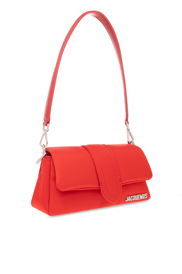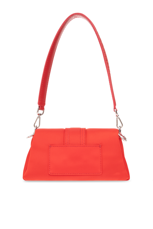 Red ‘Le Petit Bambimou’ shoulder bag from Jacquemus. Crafted from fabric with leather trims, this design features a magnetic snap, metal logo detail, back pocket, detachable handle, adjustable shoulder strap, silver-tone metal hardware and one internal compartment with one card slot.