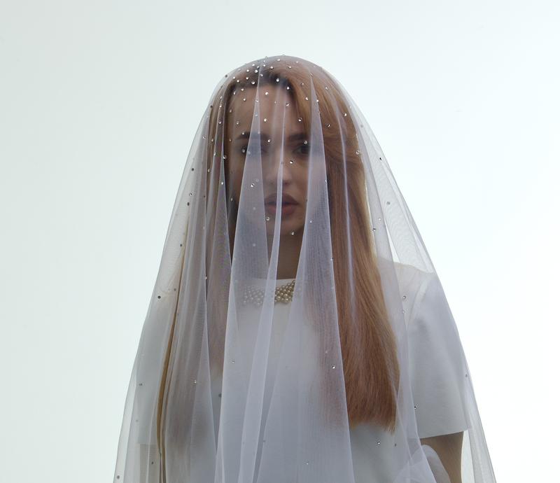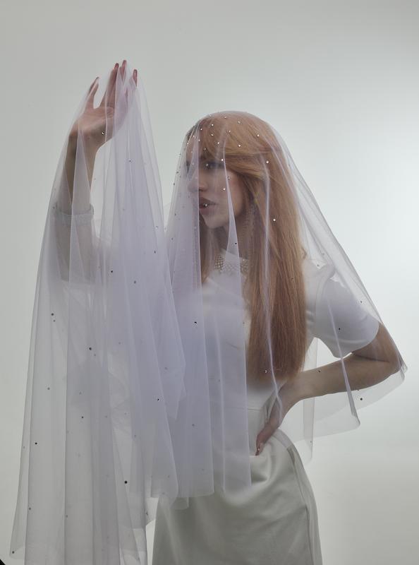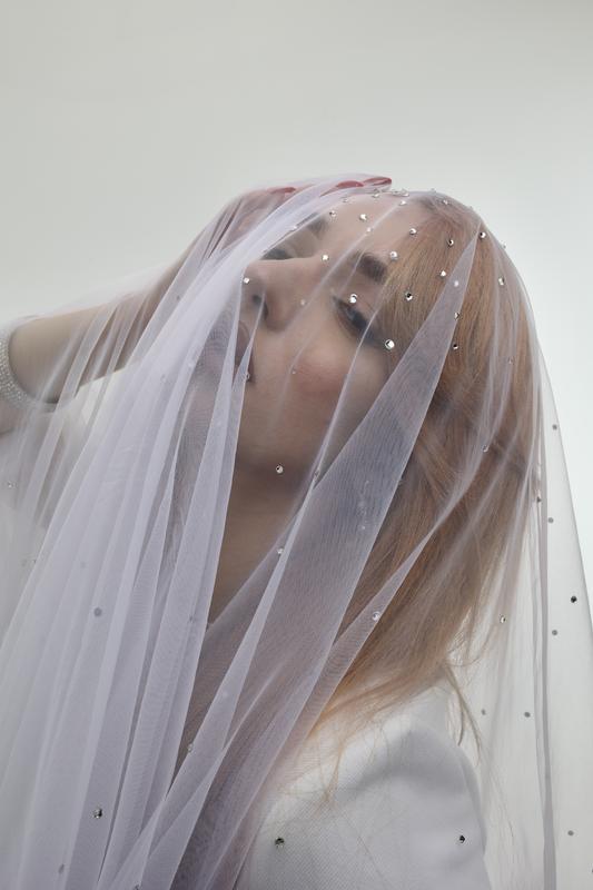 Весенняя фата для невесты со стразами по всей длине, на макушке больше страз, к низу уменьшаются по типу омбре. Все стразы приклеены силиконовым клеем, который не отклеивается и не желтеет. Для загадочности Фата выкройка овалом, чтобы была вуаль и на лицо. Длина общего полотна вуали 2 м, ширина 1,5м.(может сделать под твои размеры, также). Именно на фото снежно-белый цвет, также может быть молочный и айвори, пиши подберем.