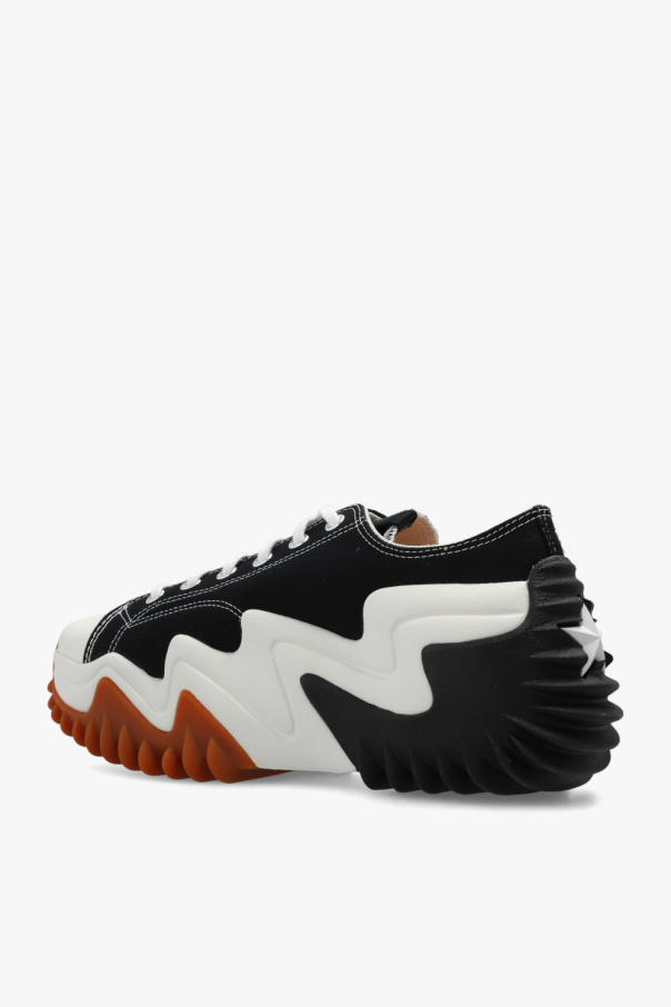 Black, cream and brown ‘RUN STAR MOTION OX’ sneakers from Converse. Crafted from fabric, this lace-up model sits on a black, cream and brown rubber sole and showcases a logo application on the heel counter and a lugged base fused with upper.