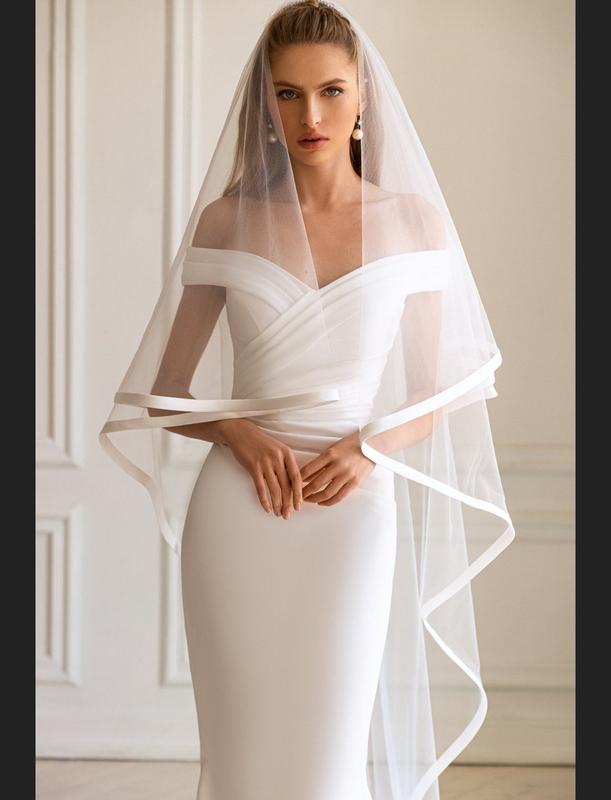 молочный и цвет слоновой кости или айвори. Край фаты может быть отделан