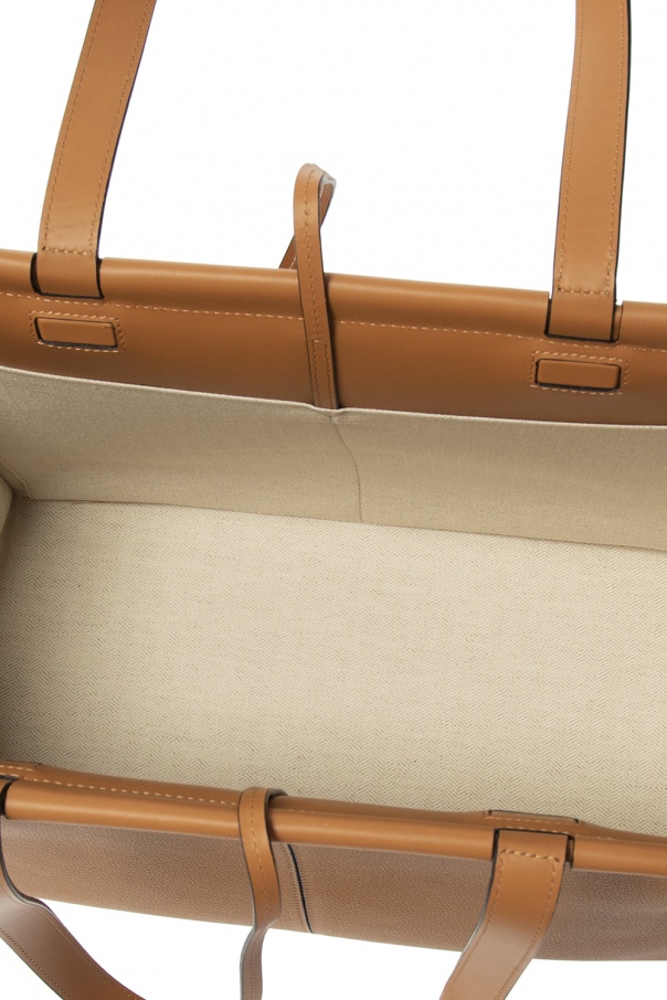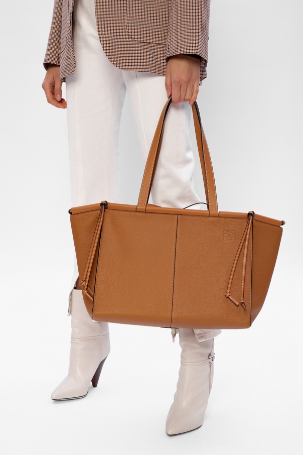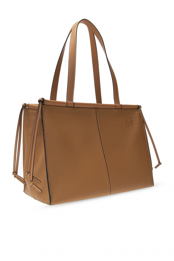 Brown ‘Cushion’ shopper bag from Loewe. Constructed from leather, this design showcases an embossed logo and distinctive fringes. It is complete with magnetic snap fastening and self-tie closure, two half-round handles and interior with one compartment and four slip pockets.