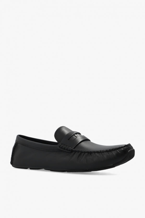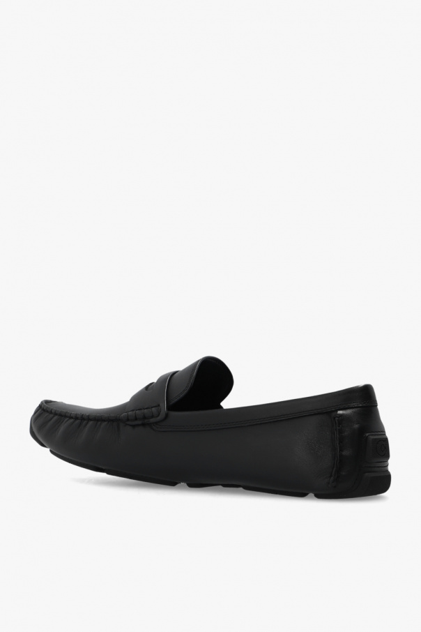 Black ‘C Coin’ moccasins from Coach. Crafted from leather, this model sits on a black rubber sole and showcases silver-tone logo hardware on the front.