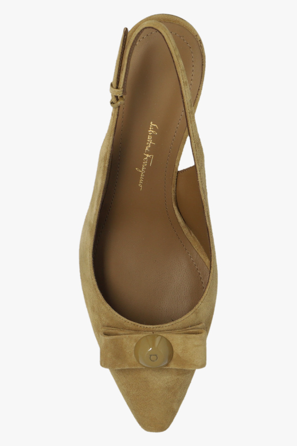 Dark beige ‘Karine’ slingback pumps from FERRAGAMO. Made of leather, this pair features a pointed toe, decorative bow and beige leather sole.
