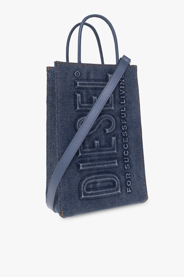 Blue ‘DSL SHOPPER 3D’ shoulder bag from Diesel. Crafted from cotton, this design showcases an embossed logo, two half-round handles, silver-tone metal hardware and one internal compartment with a slip pocket.