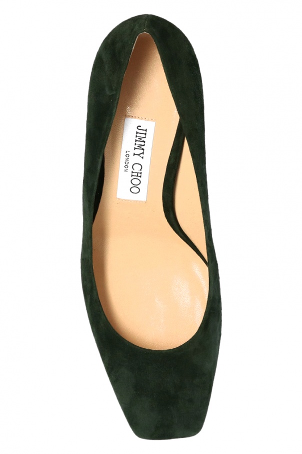 Green ‘Dianne’ pumps from Jimmy Choo. Crafted from patent calf leather, this item features a metal logo in gold-tone and a cream leather sole.