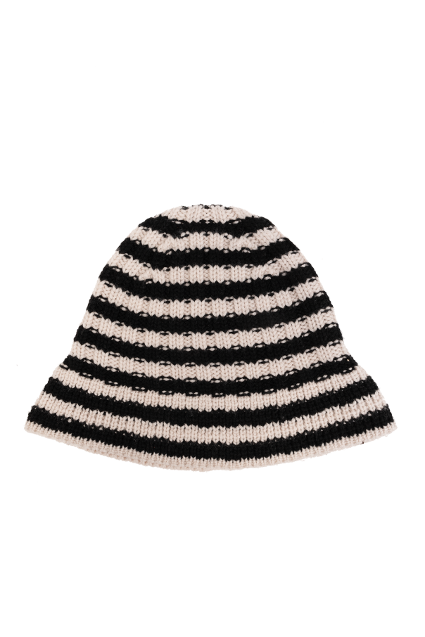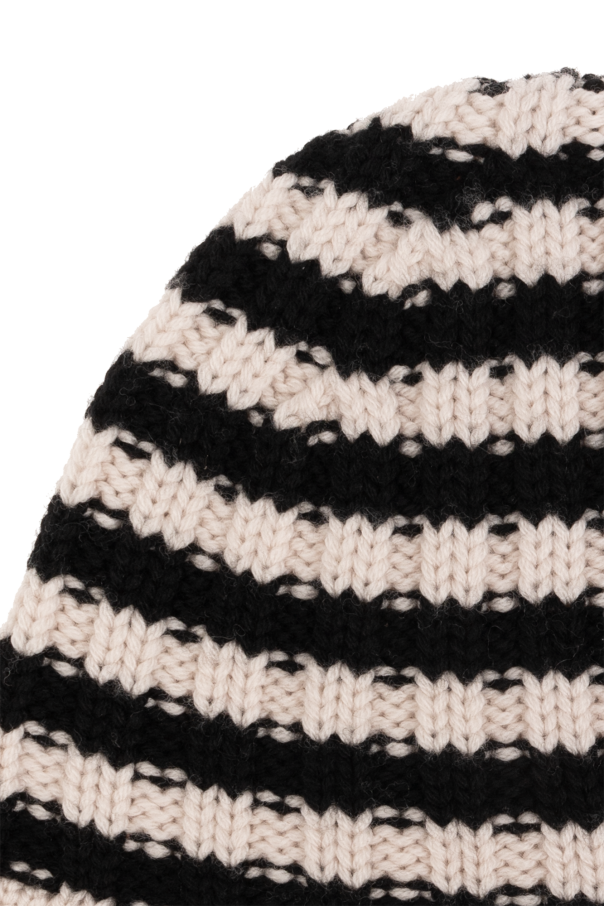 Black and white beanie from Etro. Made of wool, this item showcases a stripe pattern.