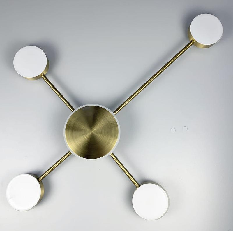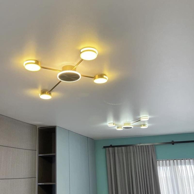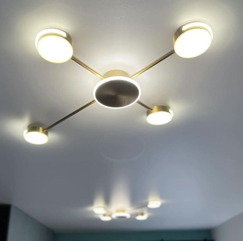 - Колірна температура: 6000 КПотолочна LED люстра-спутник кольору латунь - це ефективне освітлення для