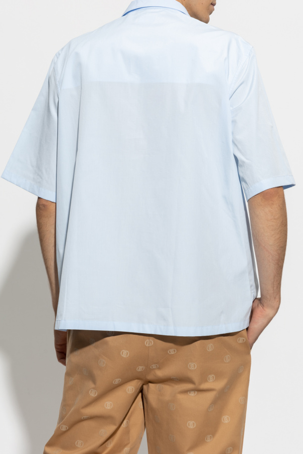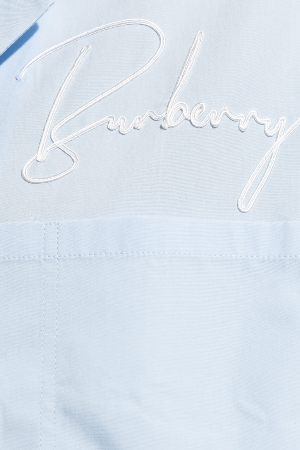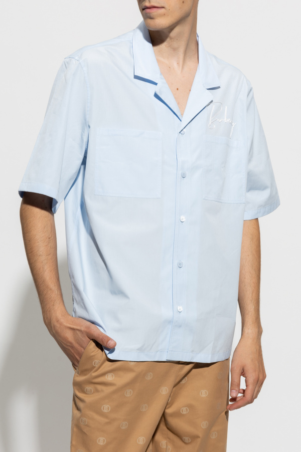 Blue ‘Releigh’ shirt from Burberry. Made of cotton, this garment features button fastenings, embroidered pattern, two slip pockets and short sleeves.