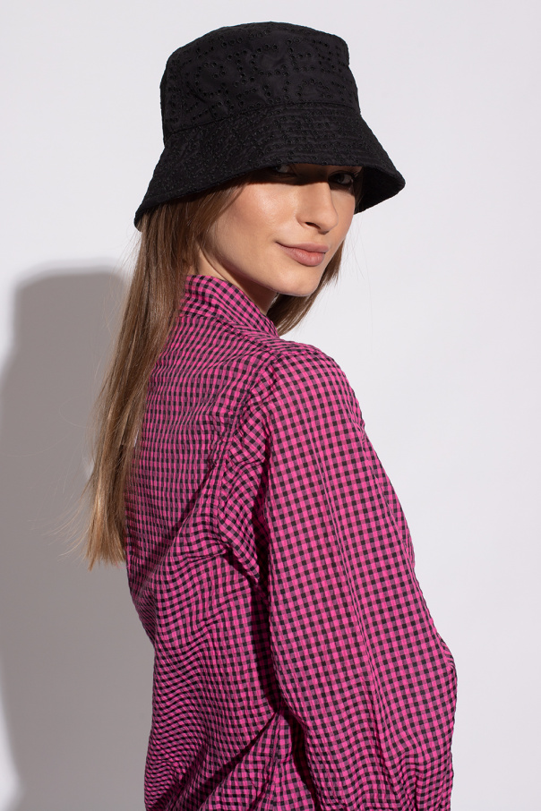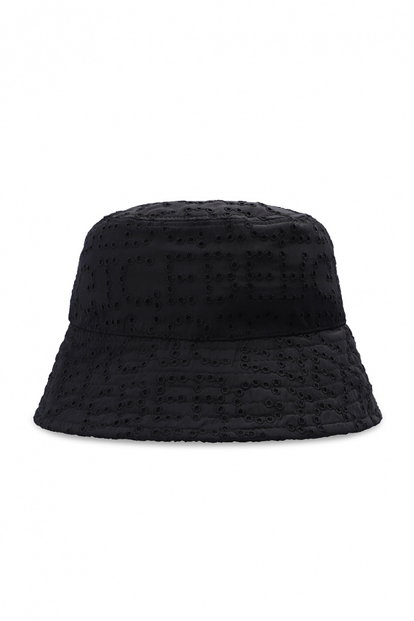 Black bucket hat with an openwork logo pattern from Iceberg.